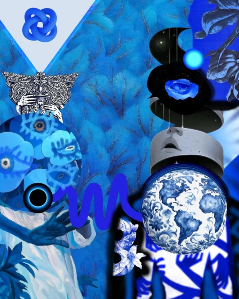 “Each collage begins with intuition. I collect materials that speak to me—a color, a texture, a fragment of text. The studio becomes a space of experimentation where accidents often lead to the most interesting discoveries.”